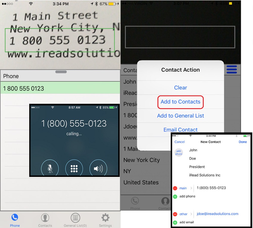 O app usa a câmera do seu iPhone para identificar números, jogando-os automaticamente no app de Telefone, permitindo que você faça ligações sem precisar digitar o número.